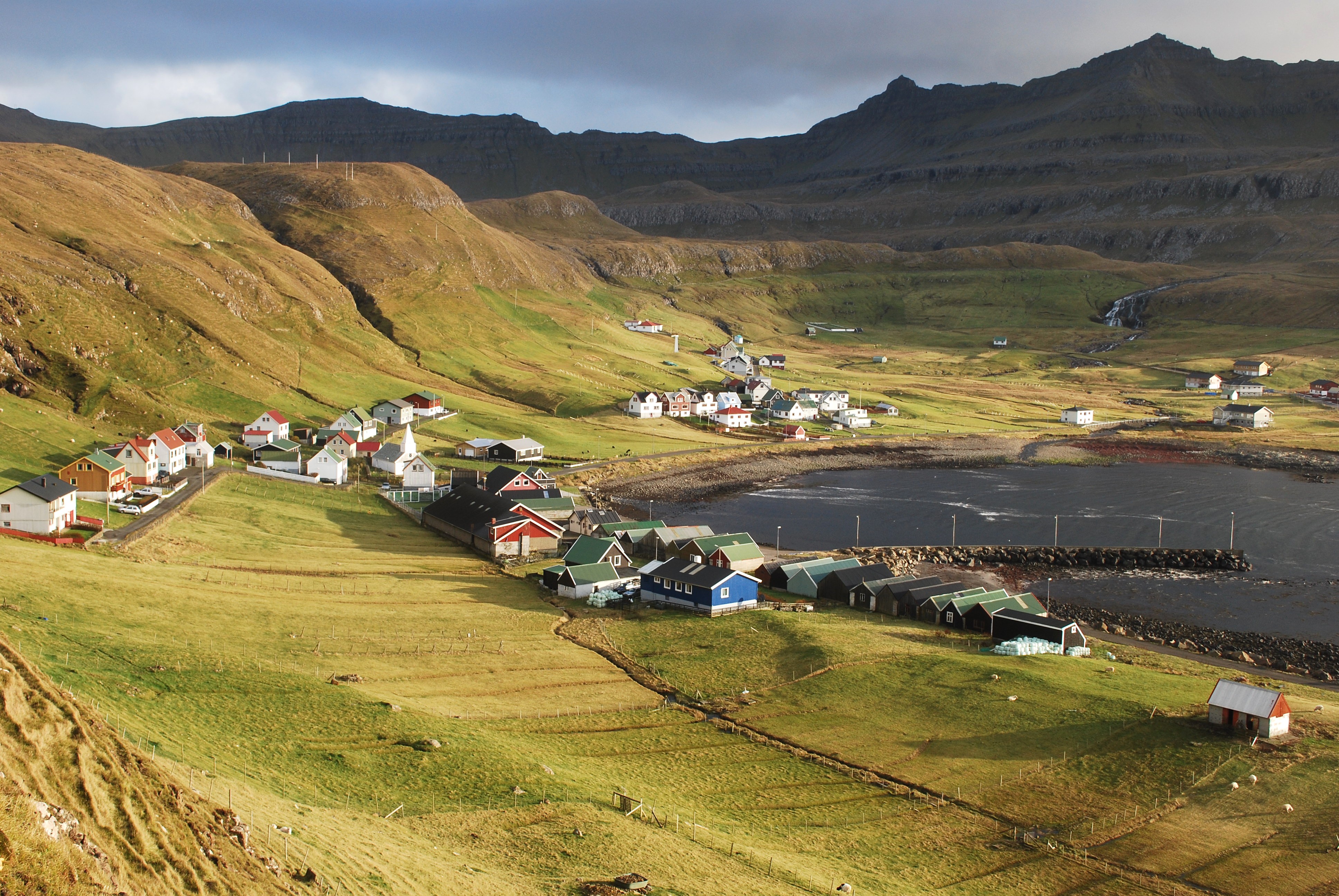 Fámjin, Faroe Adaları'nın en güneydeki Suðuroy adasında yer alan küçük bir köydür. Sadece 150 civarında kalıcı nüfusuyla adeta zamanın durduğu bu yerleşim, dev kayalıkların arasında denize sıfır mesafede inşa edilmiş evleriyle dikkat çeker. Köyün en çarpıcı özelliği, dağdan denize doğru akan Fámjin Şelalesi'dir. Bu doğal şaheser, köyün arka planında devasa bir perde gibi dalgalanır. Rüzgârlı havalarda tuzlu damlaların yüzünüze değmesi, burayı büyüleyici kılan unsurlardan biridir. Yerel mimari tarzı koruyan ahşap evler ve renkli çatılar, fotoğraf tutkunları için mükemmel kareler sunar.