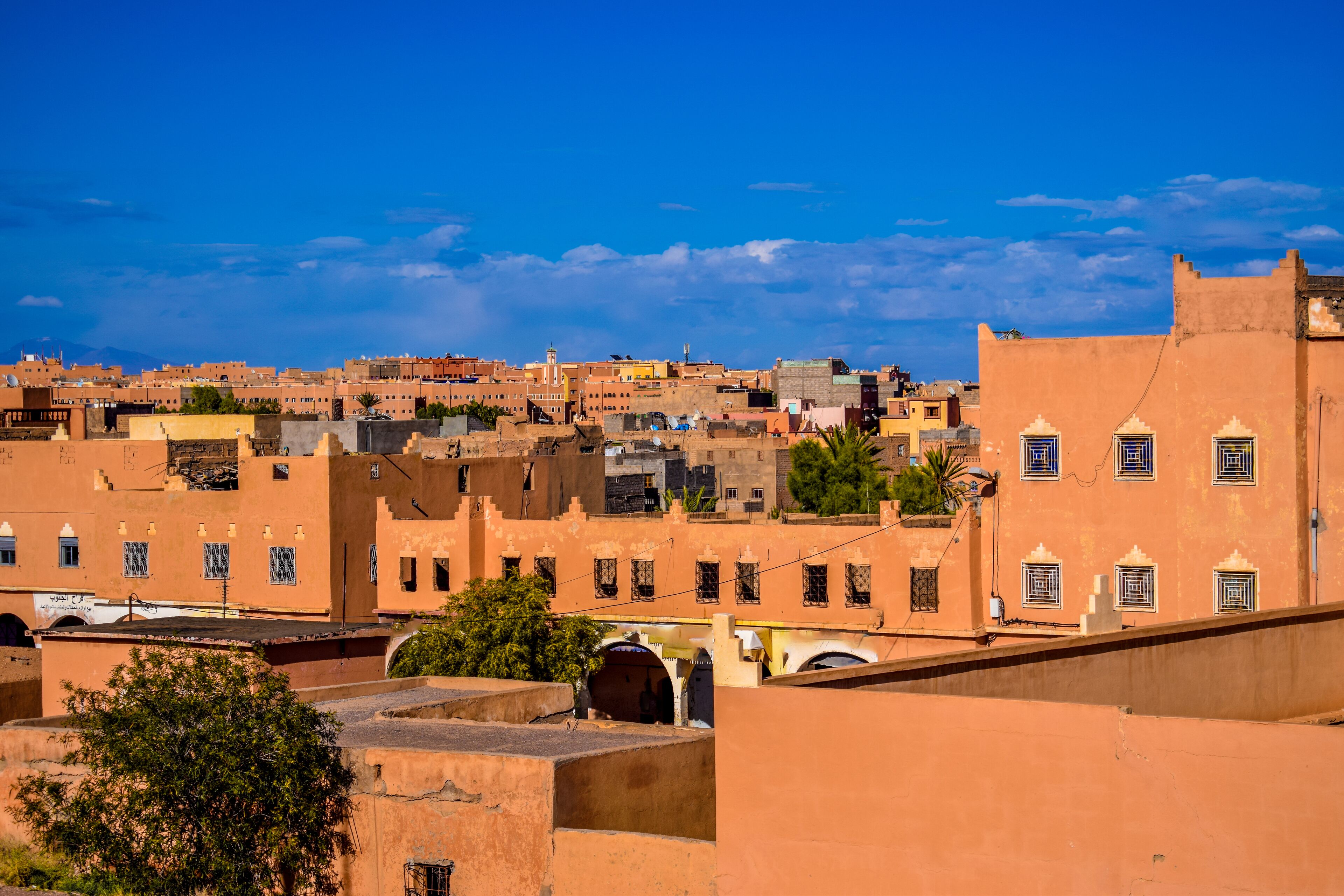 Fas'ın güneyinde, Atlas Dağları'nın eteklerinde yer alan Ouarzazate, 'Çölün Kapısı' ve 'Afrika'nın Hollywood'u' olarak anılır. Dra Vadisi'nin başlangıç noktasında konumlanan bu büyüleyici şehir, sonsuz kum tepeleri, antik ksar'lar ve görkemli kasabalar ile ziyaretçilerini adeta başka bir çağa taşır. Ünlü Aït Benhaddou Ksar'ına ev sahipliği yapan Ouarzazate, dünyaca tanınan filmlerin ve dizilerin çekim mekânı olmasıyla da uluslararası üne kavuşmuştur. Berber kültürünün yaşatıldığı bu topraklar; geleneksel çamur mimarisi, rengarenk çarşılar ve misafirperver yerel halk ile her gezgine unutulmaz bir deneyim sunar. Sahra Çölü'ne açılan kapı niteliğindeki Ouarzazate, hem macera hem de kültür arayanlar için Fas'ın en değerli destinasyonlarından biridir.